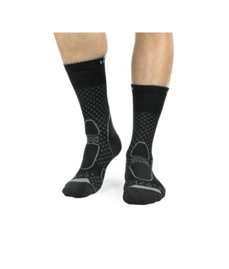 La petite dernière de la gamme Rando/Trekking, un modéle polyvalent pour la rando et la marche. Pour les grands et les moins grands, elle sait tout faire, et malgré son petit prix ne laisse rien au hasard: Tricotage Nid d’Abeille en Cool-Max©, laine, talons pointes renforcés, légère et confortable... Elle passe partout.