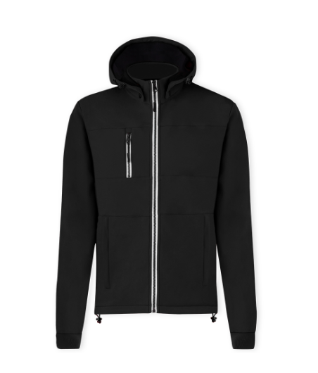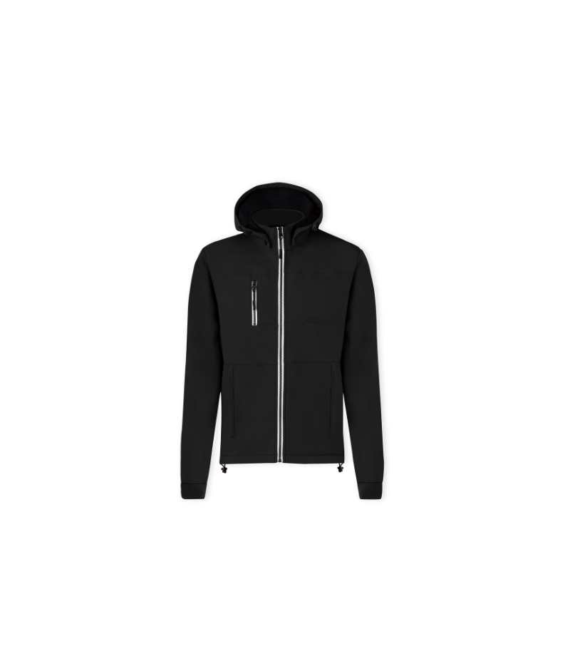 Veste en matière softshell 300g/m2 résistante et respirante. Coupe moderne, avec un zip central, des poches latérales et une pratique poche poitrine avec fermetures zip et anses contrastées. Col montant avec capuche ajustable et amovible. Ourlet inférieur avec cordon de serrage réglable. Manches avec poignets tricotés confortables de couleur assortie. Extérieur softshell résistant au vent et à l'eau et intérieur chaud en micropolaire de couleur contrastante. Disponible en tailles XS, S, M, L, XL, XXL.