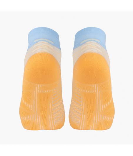 Optez pour la chaussette RUN MARATHON LOW Orange/Ciel, conçue en France pour les coureurs exigeants.